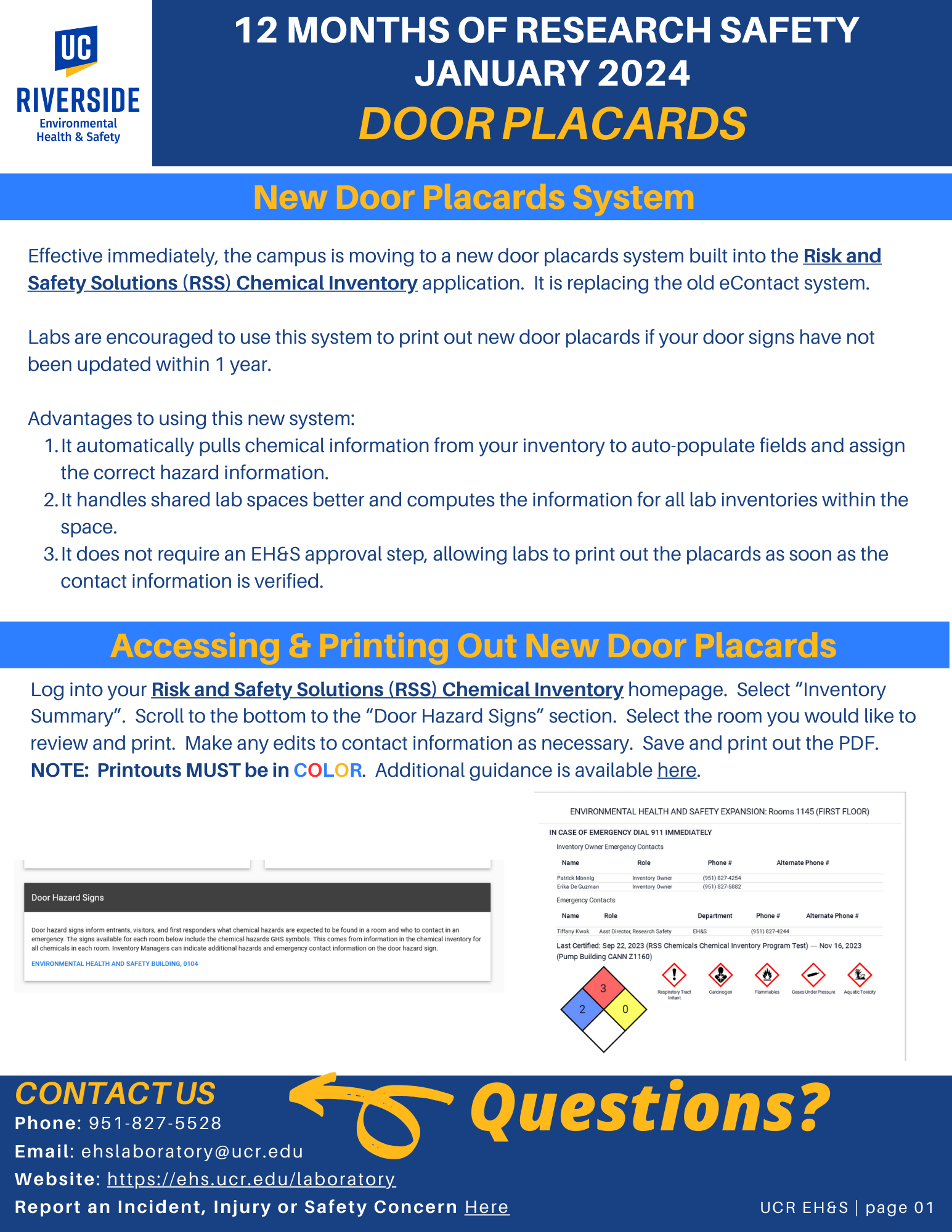 12 Months of Research Safety topic for January 2024 - Door Placards