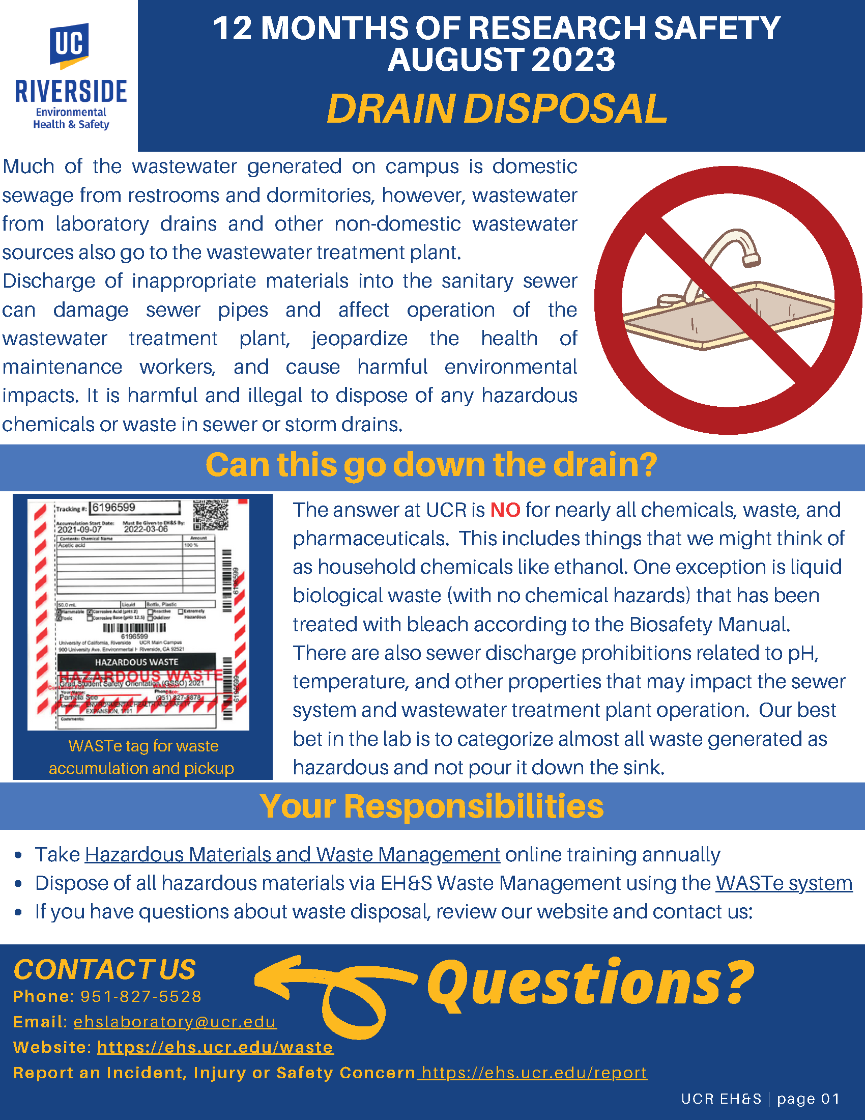 12 Months of Research Safety topic for August 2023 - Drain Disposal