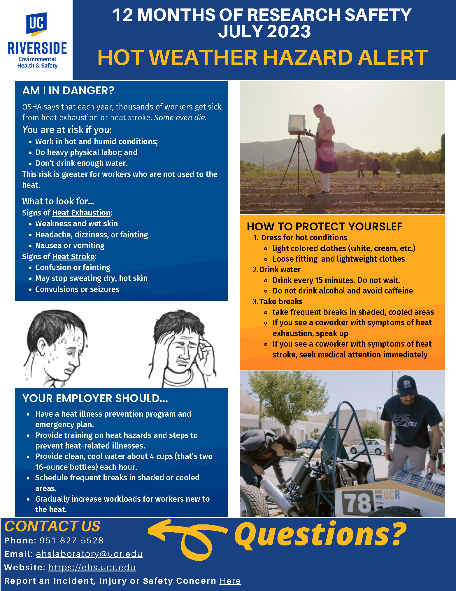 12 Months of Research Safety topic for July 2023-Hot Weather Hazard Alert page 1