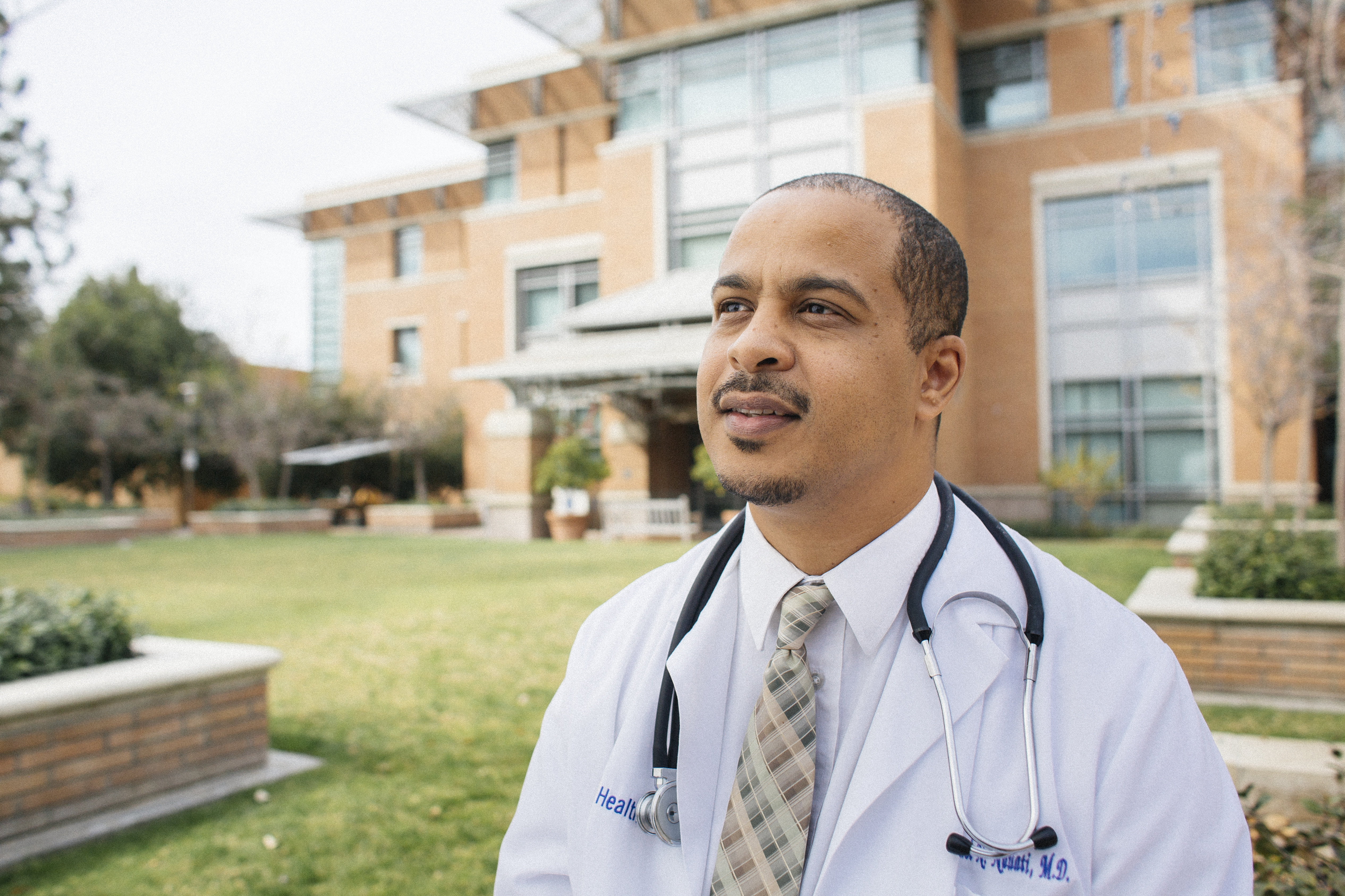Physician wearing a coat and stethoscope